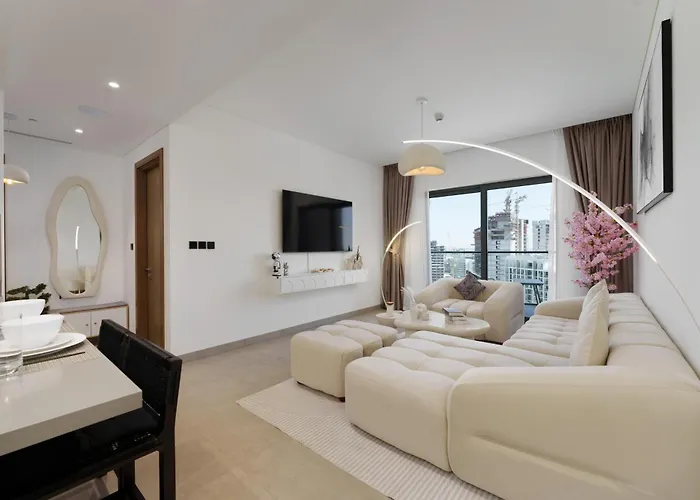 Daniels 1Br At Waves Grande In Sobha Hartland Apartment offers a balcony and a sitting area, as well as comforts like an air conditioner. At the property, guests will enjoy the convenience of a hairdryer and towels in the bathroom. Furthermore, a tub, a separate toilet, and a shower is available.